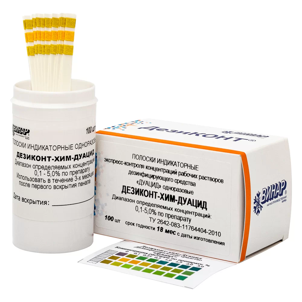 - Универсальных индикаторов для контроля концентрации рабочих растворов дезинфектантов не бывает — каждый индикатор создается для конкретного дезинфицирующего средства.