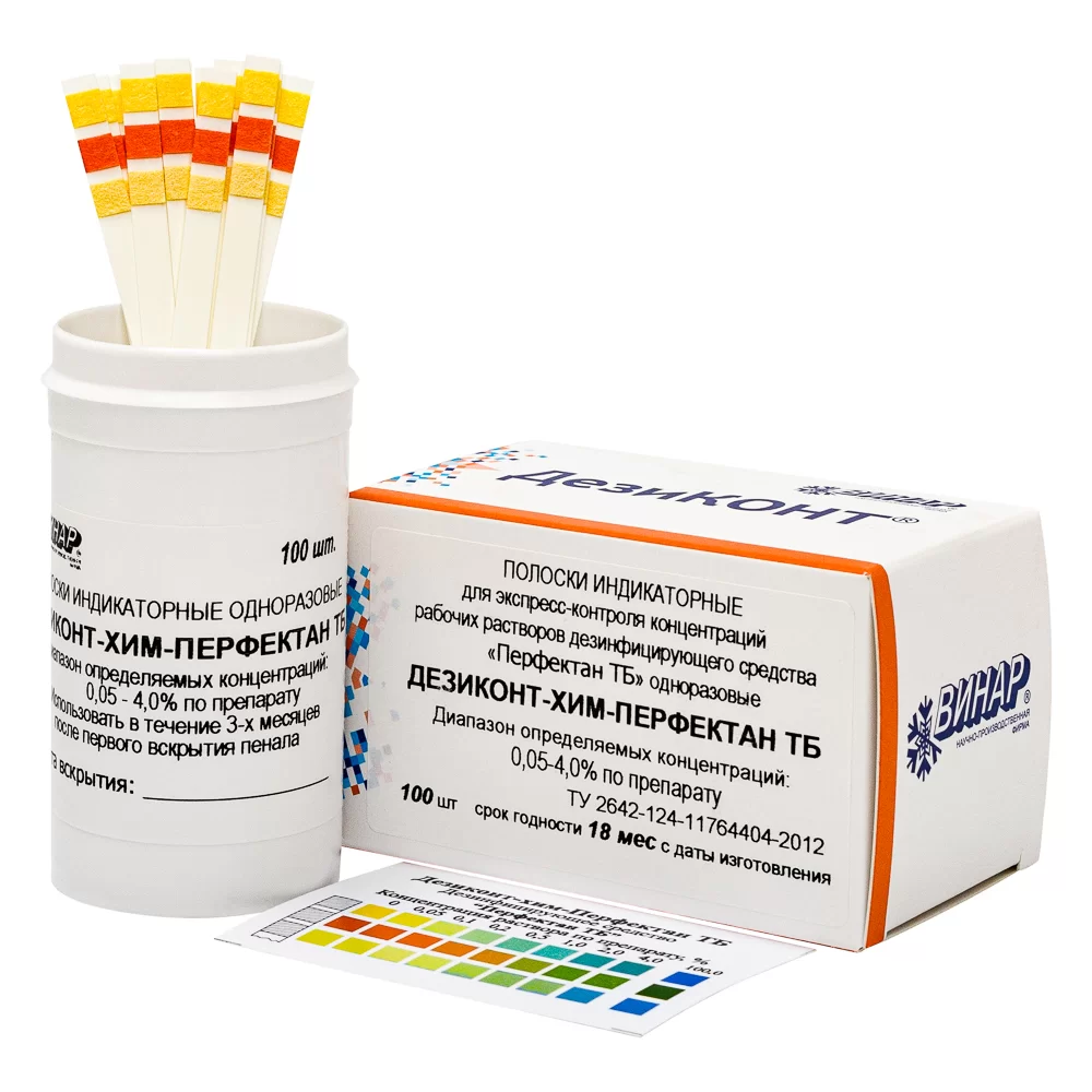 - Универсальных индикаторов для контроля концентрации дезинфицирующих растворов не существует — индикаторные полоски разрабатываются отдельно для каждого конкретного дезинфицирующего средства!