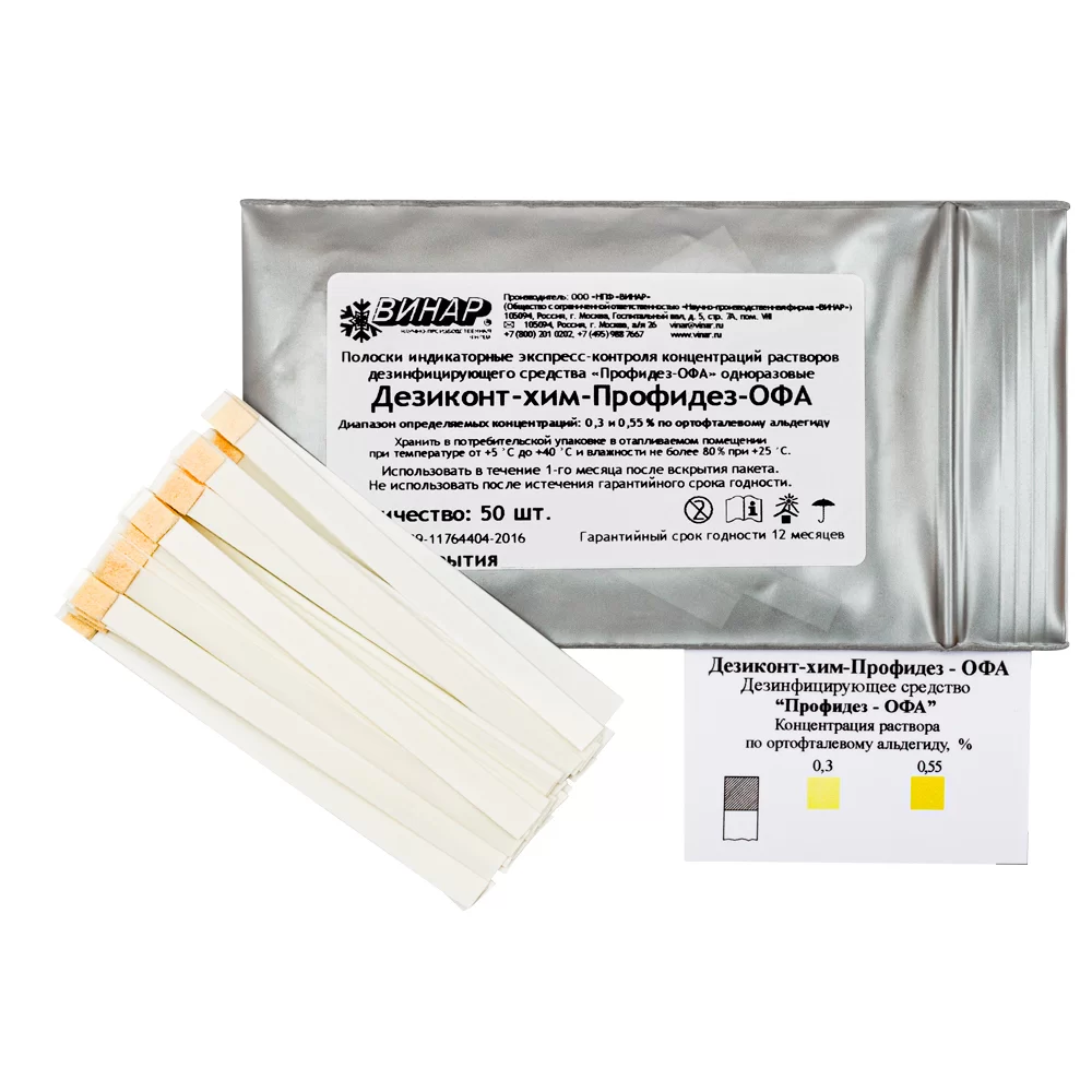 - Индикаторы предназначены индивидуально для определённого дезинфицирующего раствора.