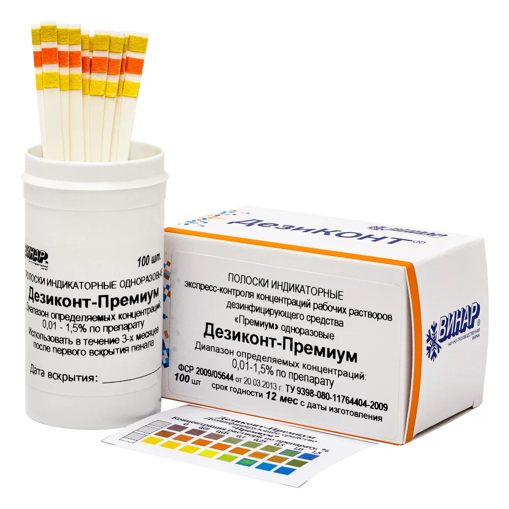 - Универсальных индикаторов для контроля концентрации дезинфицирующих растворов не существует — индикаторные полоски разрабатываются отдельно для каждого конкретного дезинфицирующего средства!