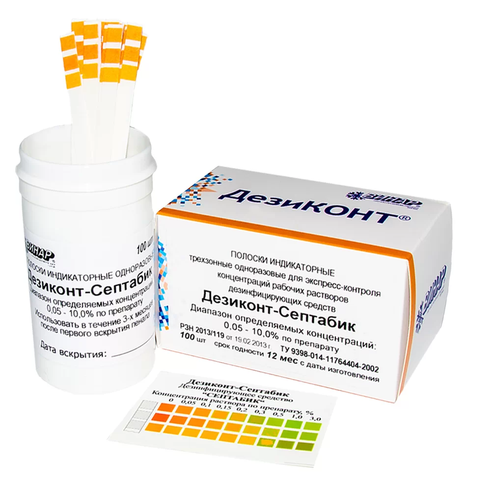 - Универсальных индикаторов для контроля концентрации дезинфицирующих растворов не существует — индикаторные полоски разрабатываются отдельно для каждого конкретного дезинфицирующего средства!