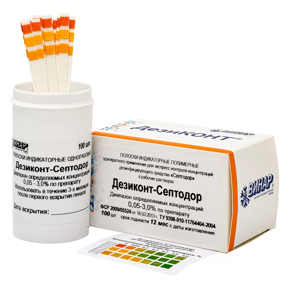 - Индикаторы предназначены индивидуально для определённого дезинфицирующего раствора дезинфицирующего средства Септодор.