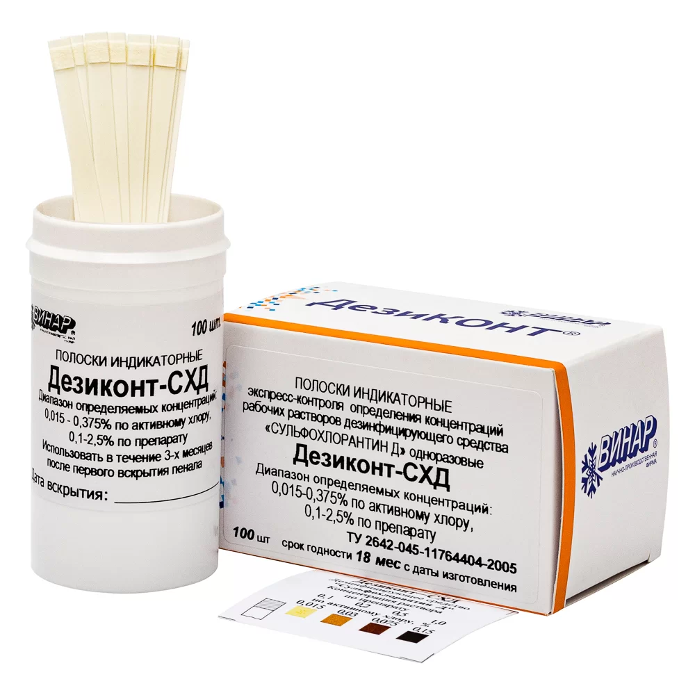 - Индикатор не предназначен для определения концентрации растворов других дезинфицирующих средств (СанПиН 3.3686-21 п.3695)