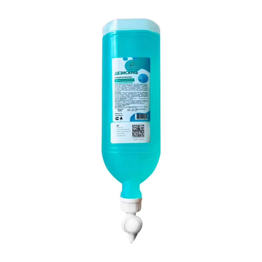 При антисептической обработке операционного поля или локтевых сгибов доноров кожу последовательно дважды протирают раздельными стерильными марлевыми тампонами, обильно смоченными средством. Время выдержки после оконча-ния обработки 2 мин. Накануне операции больной принимает душ (ванну), меняет белье. При антисептической обработке инъекционного поля кожу протирают (в одном направлении) стерильным ватным тампоном, смоченным средством «Дезискраб». Время выдержки после окончания обработки 1 мин. При гигиенической обработке рук, в том числе рук медицинского персонала 5 мл средства наносят на кисти рук и втирают в кожу в течение 2 минут. Срок хранения: