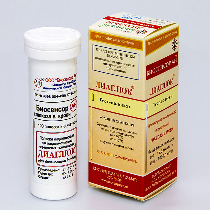 Полоски индикаторные ДИАГЛЮК предназначены для визуального полуколичественного определения глюкозы в цельной крови человека. Они могут быть использованы для ориентировочной оценки уровня глюкозы в крови у больных диабетом, при подозрении на диабет (например, при наличии факторов риска), при необходимости экстренной диагностики в медицинских учреждениях, а также для самоконтроля.