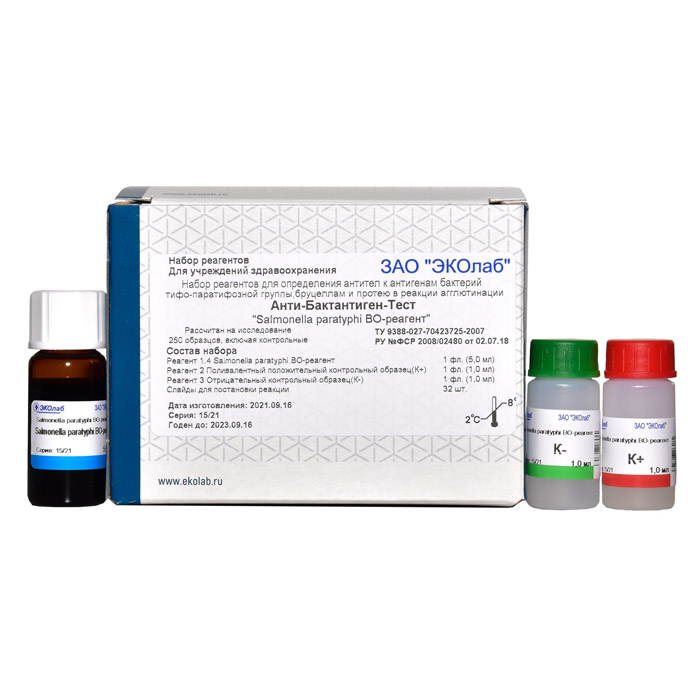 Набор реагентов для определения антител к антигенам бактерий тифо-паратифозной группы, бруцеллам и протею в реакции агглютинации.