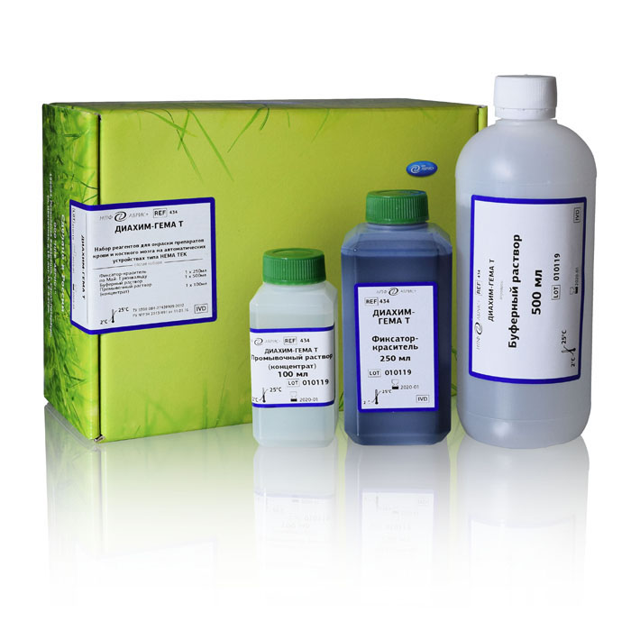 Набор реагентов Диахим-Гема-Т предназначен для окраски препаратов крови и костного мозга на автоматических устройствах для окраски мазков HemaTek.