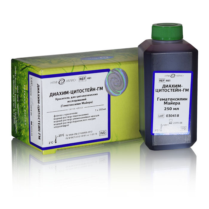 Краситель Диахим-ЦитоСтейн-ГМ для цитологических исследований (Гематоксилин Майера), предназначен для избирательного окрашивания ядер клеток в различных цитологических и гистологических препаратах в клинико-диагностических лабораториях.