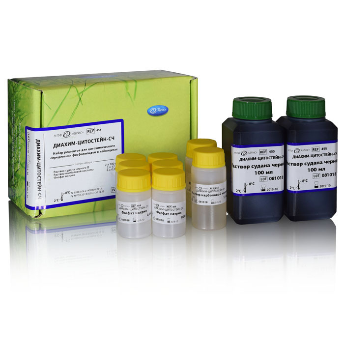 Набор реагентов Диахим-ЦитоСтейн-СЧ предназначен для выявления фосфолипидов в клеточных элементах (кровь, костный мозг). Используется для диагностики острых лейкозов и служит маркерной реакцией для диагностики миелолейкозов, вместе с реакцией на миелопероксидазу.