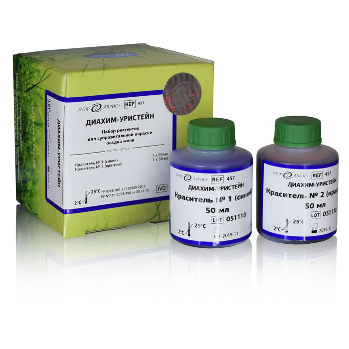 Набор реагентов Диахим-УриСтейн предназначен для суправитальной (без предварительной фиксации) окраски осадка мочи в клинико-диагностических лабораториях.