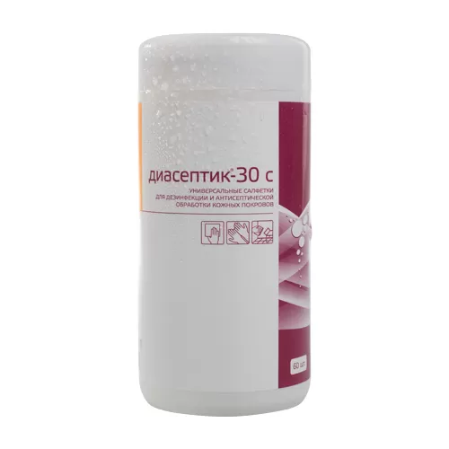 - в качестве пропиточного состава салфеток используют дезинфицирующее средство “ДИАСЕПТИК-30 ДВС”, содержащее изопропанол (пропанол-2) - 30%, полигексаметиленбигуанид гидрохлорид -0,25% в качестве действующих веществ, функциональные добавки, в том числе кондиционер воды, эмульгатор, смягчающие добавки и воду питьевую деионизированную.