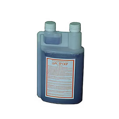 Средство «Дистроер» представляет собой прозрачную жидкость синего цвета, смешиваемую с водой в любых пропорциях.
