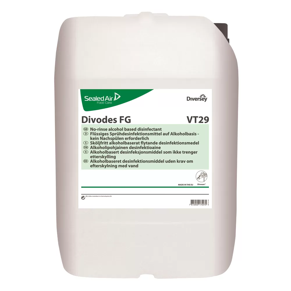 Divodes FG безопасен при применении на поверхностях, контактирующих с пищевыми продуктами, быстро испаряется, не оставляет потеков.