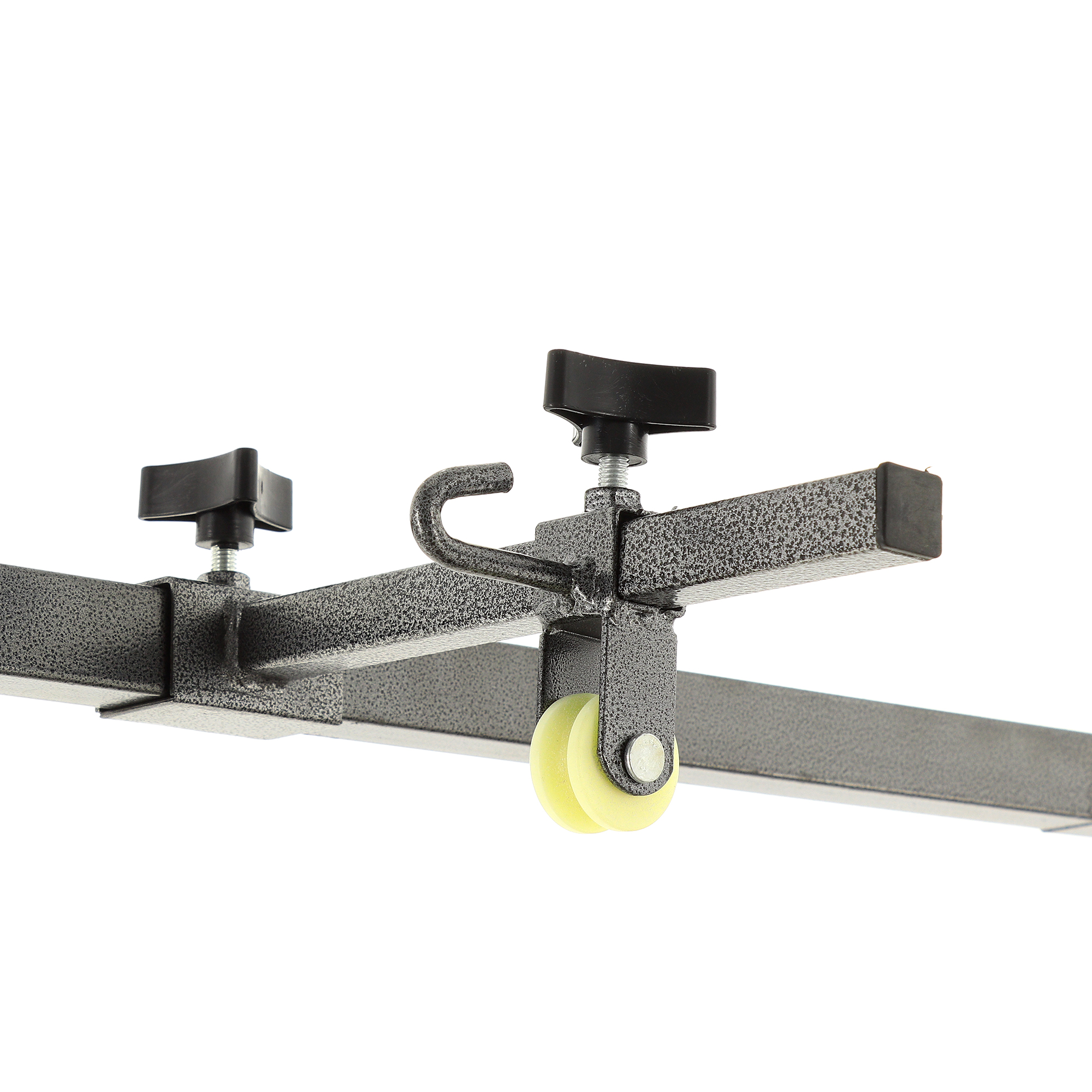 - Комплектуются штангой с крюком и роликом