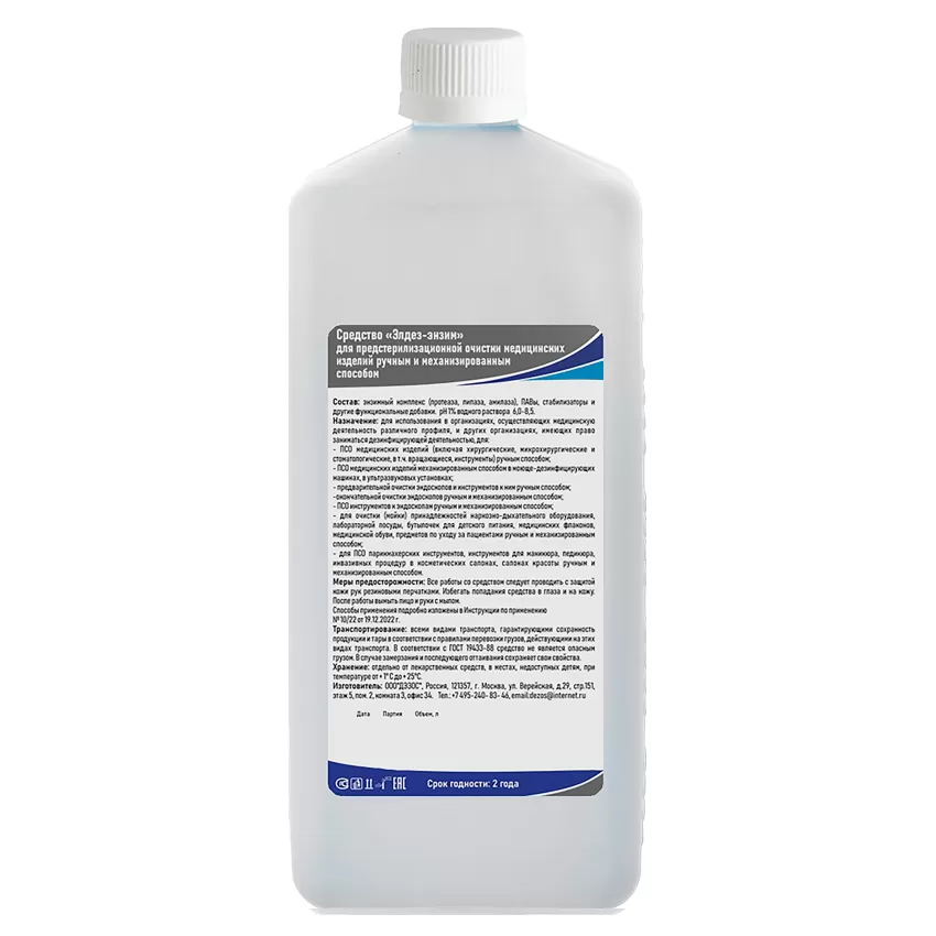 - Средство Элдез-энзим представляет собой прозрачную жидкость от голубого до синего цвета со слабым специфическим запахом или запахом отдушки.
