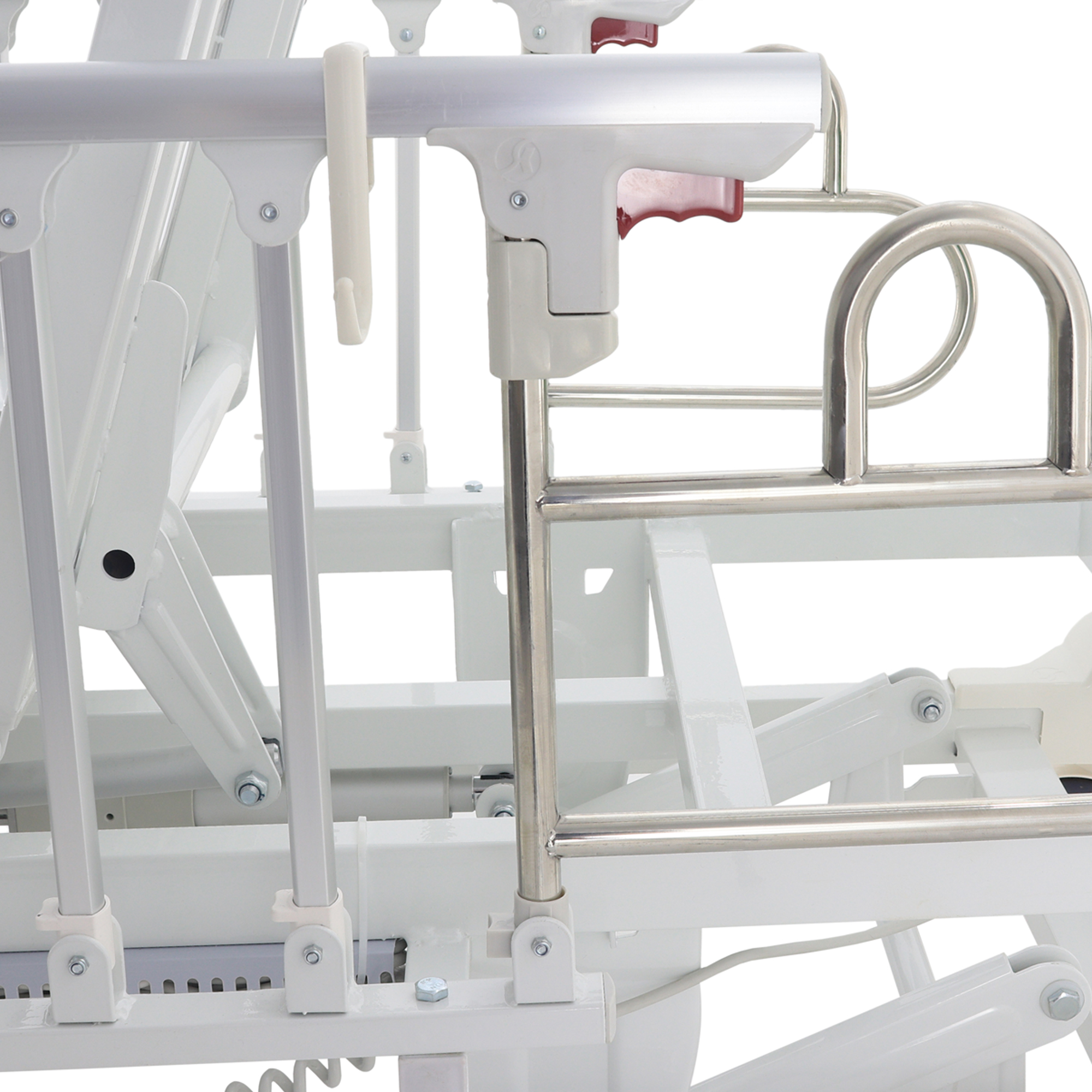 - Конструкция: Ложе состоит из 4 секций, включая 3 подвижные (спинная, бедренная, икроножная) и 1 неподвижную (тазовая). Каждая секция выполнена из профилированного перфорированного стального листа толщиной 1,2 мм, соединенного стальными петлями и опирающегося на сварной каркас.