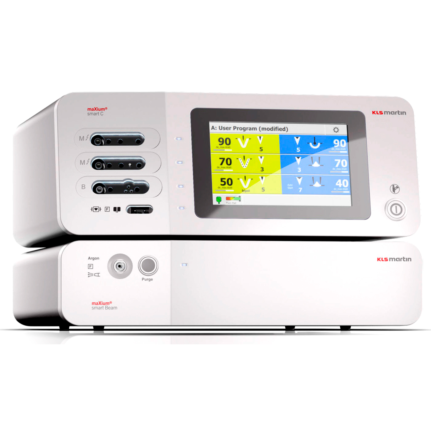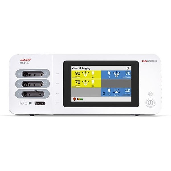KLS Martin maXium smart C универсальный электрохирургический аппарат maXium smart C — это универсальный аппарат и при правильно подобранных аксессуарах на нем возможно проводить операции любой сложности в совершенно различных хирургических дисциплинах. монополярное резание мощностью до 400 Вт монополярная коагуляция мощностью до 200 Вт биполярные резание и коагуляция мощностью до 120 Вт.