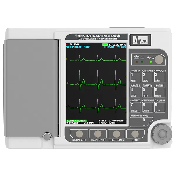 Электрокардиограф ЭК12Т-01-«Р-Д» представляет собой современное компактное 12-канальное устройство, осуществляющее регистрацию электрокардиограммы в ручном и автоматическом режимах.