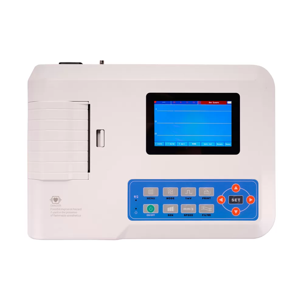 - Параметры измерения: частота сердечных сокращений, интервал P-R, продолжительность P, продолжительность QRS, продолжительность T, интервал Q-T, Q-Tc, ось P, ось QRS, ось T, (V5), S(V1), R(V5)+S(V1)