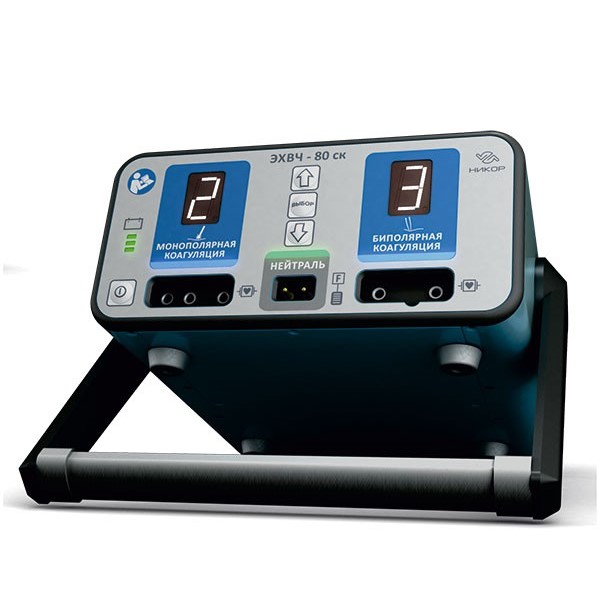 <span>Электрокоагулятор ЭХВЧ-80-ск Никор - это переносной автономный ЭХВЧ-аппарат малой мощности, он предназначен для резания и коагуляции биологических тканей токами 80 кГц монополярным и биполярным методом при хирургических вмешательствах.</span>