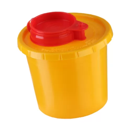МК-01-контейнер для сбора, хранения, транспортирования и утилизации колюще-режущих отходов, одноразовый (жёлтый), 0,5 л, с индикатором вскрытия.