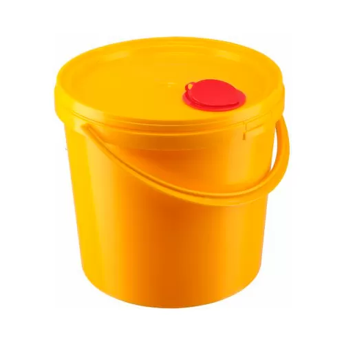 МК-01-контейнер для сбора, хранения, транспортирования и утилизации колюще-режущих отходов, одноразовый (жёлтый), 10,0 л, с индикатором вскрытия.