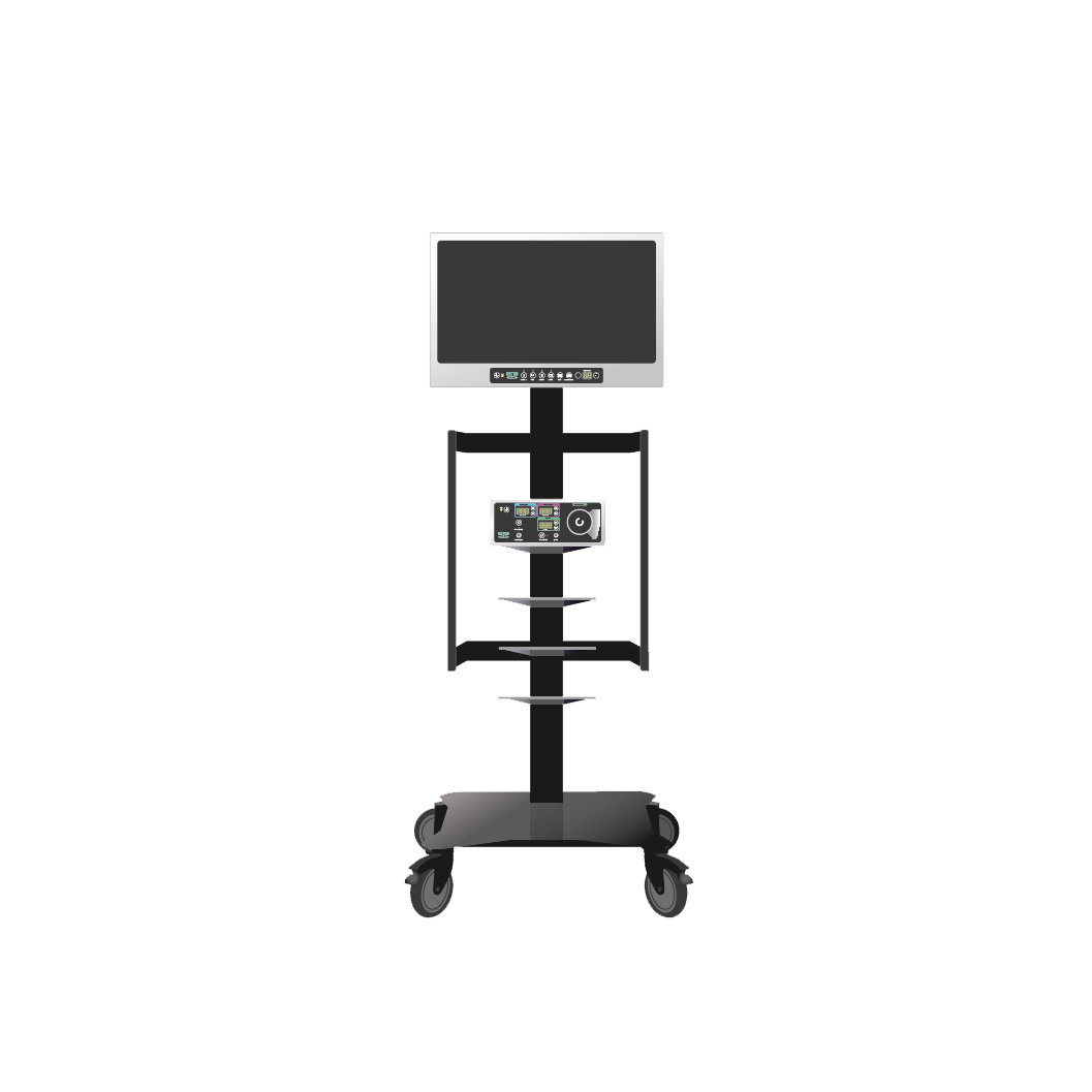 Стойка передвижная для эндоскопических аппаратов и устройств предназначена для установки и перемещения аппаратов и устройств для эндоскопической хирургии. Стойка выполнена из высококачественных материалов: алюминий, нержавеющая сталь. Данная модель стойки имеет 4 полки.