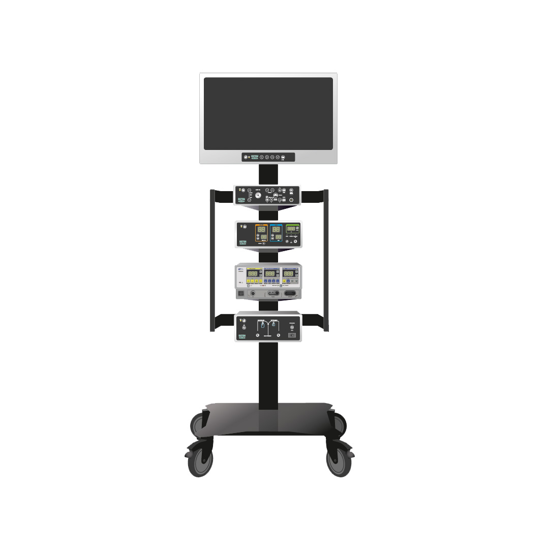 Стойка передвижная для эндоскопических аппаратов и устройств предназначена для установки и перемещения аппаратов и устройств для эндоскопической хирургии. Стойка выполнена из высококачественных материалов: алюминий, нержавеющая сталь.