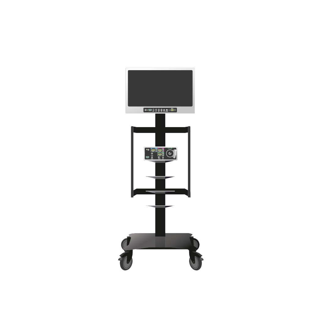 Стойка передвижная для эндоскопических аппаратов и устройств предназначена для установки и перемещения аппаратов и устройств для эндоскопической хирургии. Стойка выполнена из высококачественных материалов: алюминий, нержавеющая сталь. Данная модель стойки имеет 4 полки.