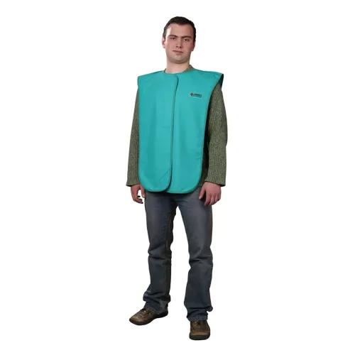В отличие от стандартного стоматологического фартука имеет более удлиненную спинку для защиты позвоночника.