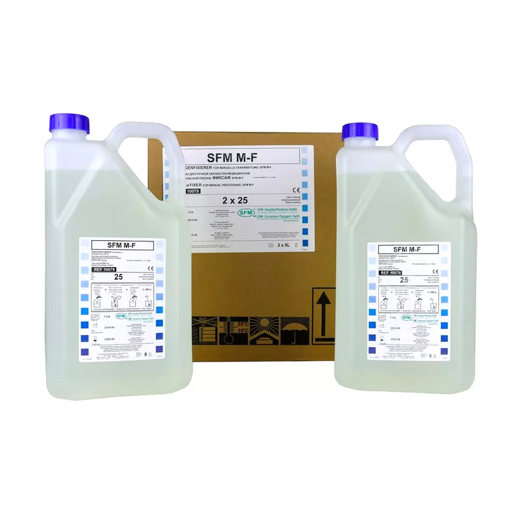 - для ручной обработки рентгенографических пленок, представляет собой концентрированный раствор объёмом 5 литров для приготовления 30 или 25 литров рабочего раствора.