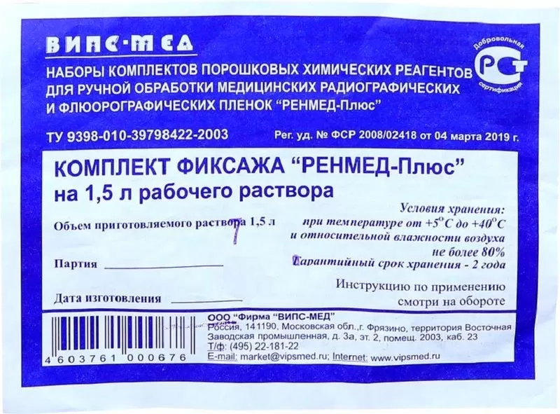 - Обработку плёнок фиксажом Ренмед можно проводить при температуре раствора от 17 до 23°С.
