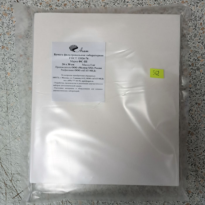 Лабораторная фильтровальная бумага произведена по ГОСТ 12026-76. Используется для фильтрации воды, масла, растворов щелочей и кислот, и прочих веществ, содержащих взвешенные примеси, при общелабораторных работах.