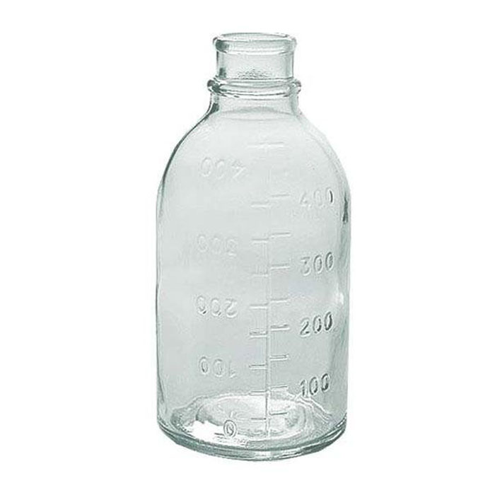Бутылка для кровезаменителей с гладким горлом, 450 мл. Предназначена для хранения крови, кровезаменителей, инфузионных и трансфузионных растворов. Изготовлена из медицинского стекла марки МТО.