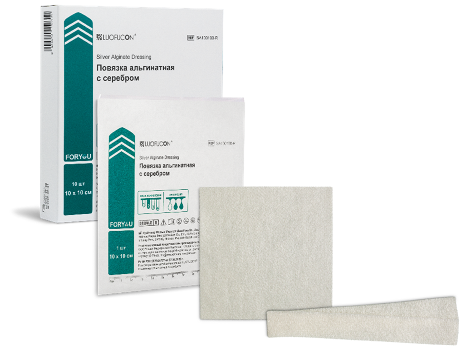 Повязка альгинатная с серебром — это стерильное антибактериальное раневое покрытие, предназначенное для лечения инфицированных и склонных к инфицированию ран с умеренной и обильной экссудацией.