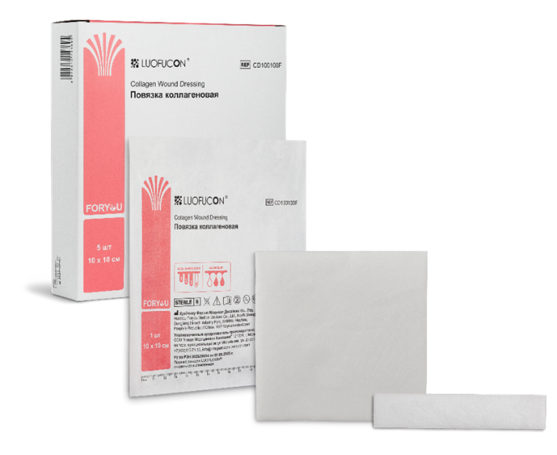 Коллагеновая повязка LUOFUCON® от компании Foryou Medical — это современное стерильное раневое покрытие, предназначенное для активного управления процессом заживления. Повязка рекомендована для использования на стадиях грануляции и эпителизации (так называемые «красные» и «розовые» раны).