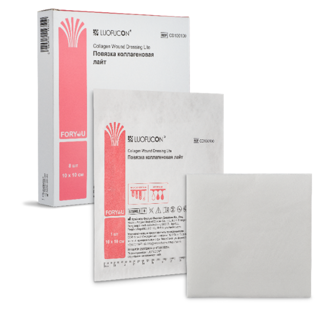 Коллагеновая повязка LUOFUCON® от компании Foryou Medical — это современное стерильное раневое покрытие, предназначенное для активного управления процессом заживления. Повязка рекомендована для использования на стадиях грануляции и эпителизации (так называемые «красные» и «розовые» раны).