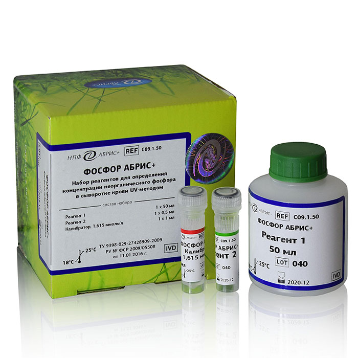 Набор реагентов для определения концентрации неорганического фосфора в сыворотке крови UV-методом без депротеинизации.