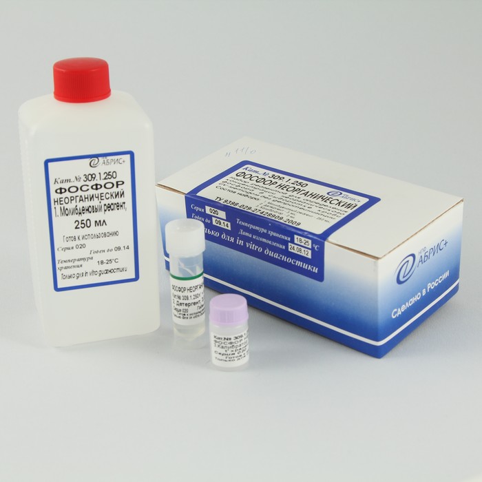 Набор реагентов для определения концентрации неорганического фосфора в сыворотке крови UV- методом без депротеинизации.