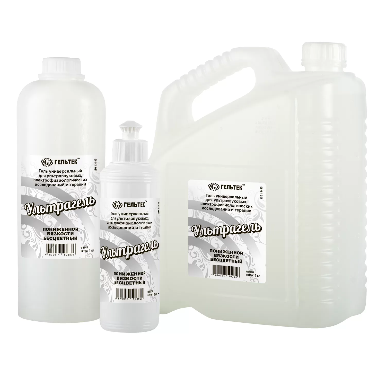Гель универсальный для ультразвуковых, электрофизиологических исследований и терапии «Ультрагель» пониженной вязкости не содержит в составе солей, контактирует с ультразвуковыми датчиками, электродами, не оказывая на них негативного воздействия. Гель показан к применению в качестве контактной среды для проведения ультразвуковых и электрофизиологических исследований и терапии, применяется для процедур, где требуется менее вязкий гель (например, для ультразвуковой диагностики абдоминальной области и ЭКГ).