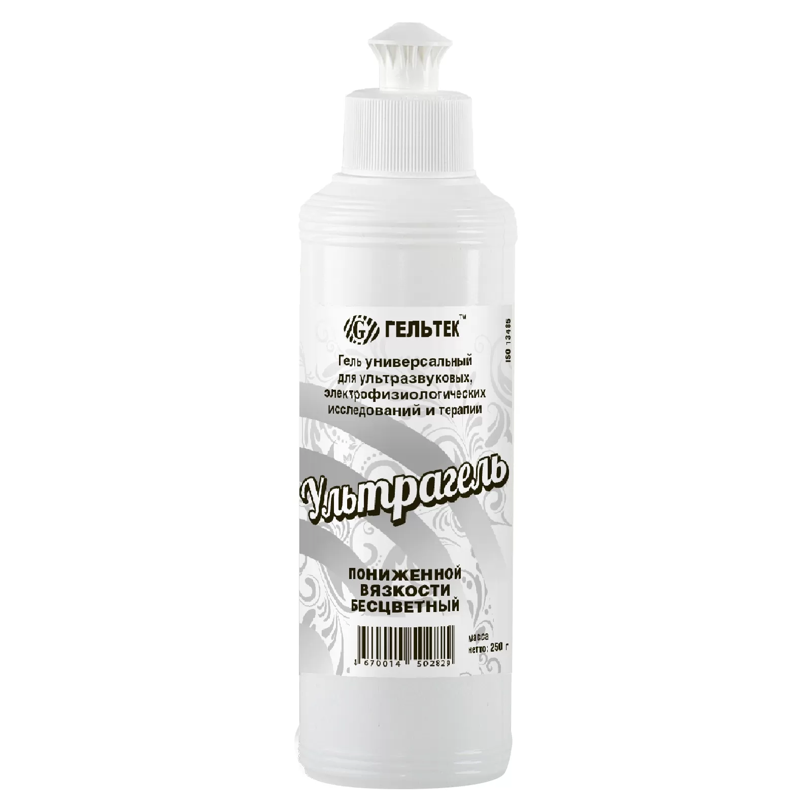 Гель универсальный для ультразвуковых, электрофизиологических исследований и терапии «Ультрагель» высокой вязкости служит эффективной контактной средой исследований при использовании отечественной или импортной аппаратуры. Гель наносится непосредственно на датчик, либо тело пациента, легко распределяется и не растекается по коже, долго не сохнет, обеспечивая длительное скольжение и полный контакт датчика с телом пациента. После проведения исследования гель легко удаляется салфеткой или смывается водой. Гель не пачкает одежду, не вызывает аллергии, не портит датчики, водорастворимый.