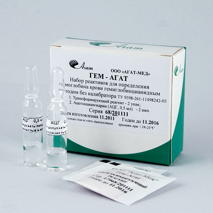 Набор ГЕМ АГАТ предназначен для количественного определения содержания гемоглобина в крови гемиглобинцианидным методом (метод Drabkin) с использованием гемоглобинометров типа «Минигем-540» в клинико-диагностических и биохимических лабораториях.