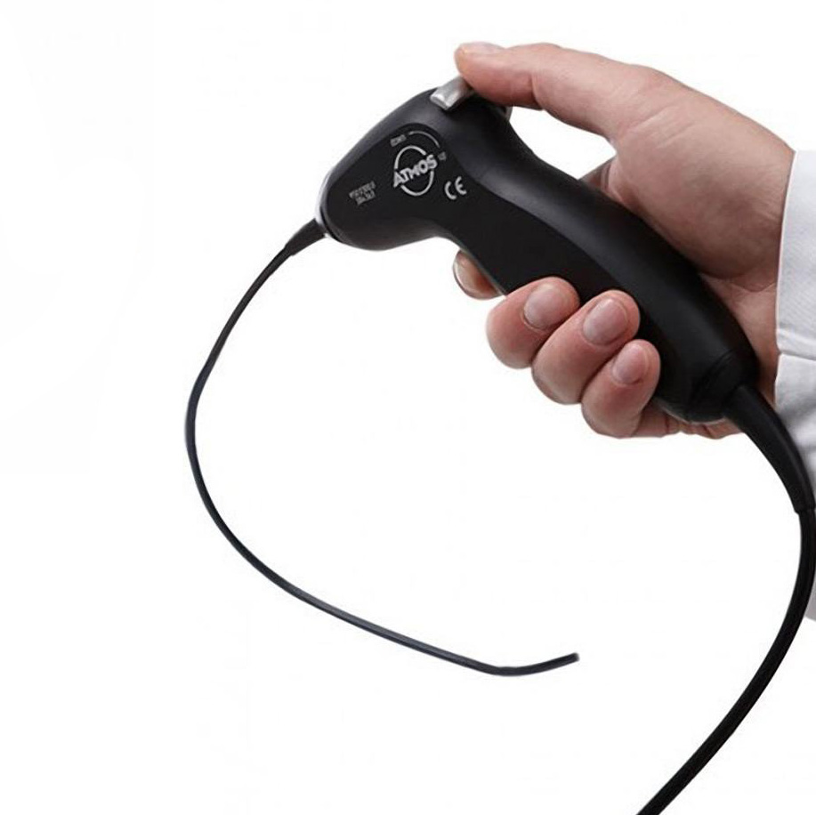 Эргономичная рукоятка ATMOS Scope берёт на себя все сложные манипуляции, проводимые врачом при эндоскопии и стробоскопии: