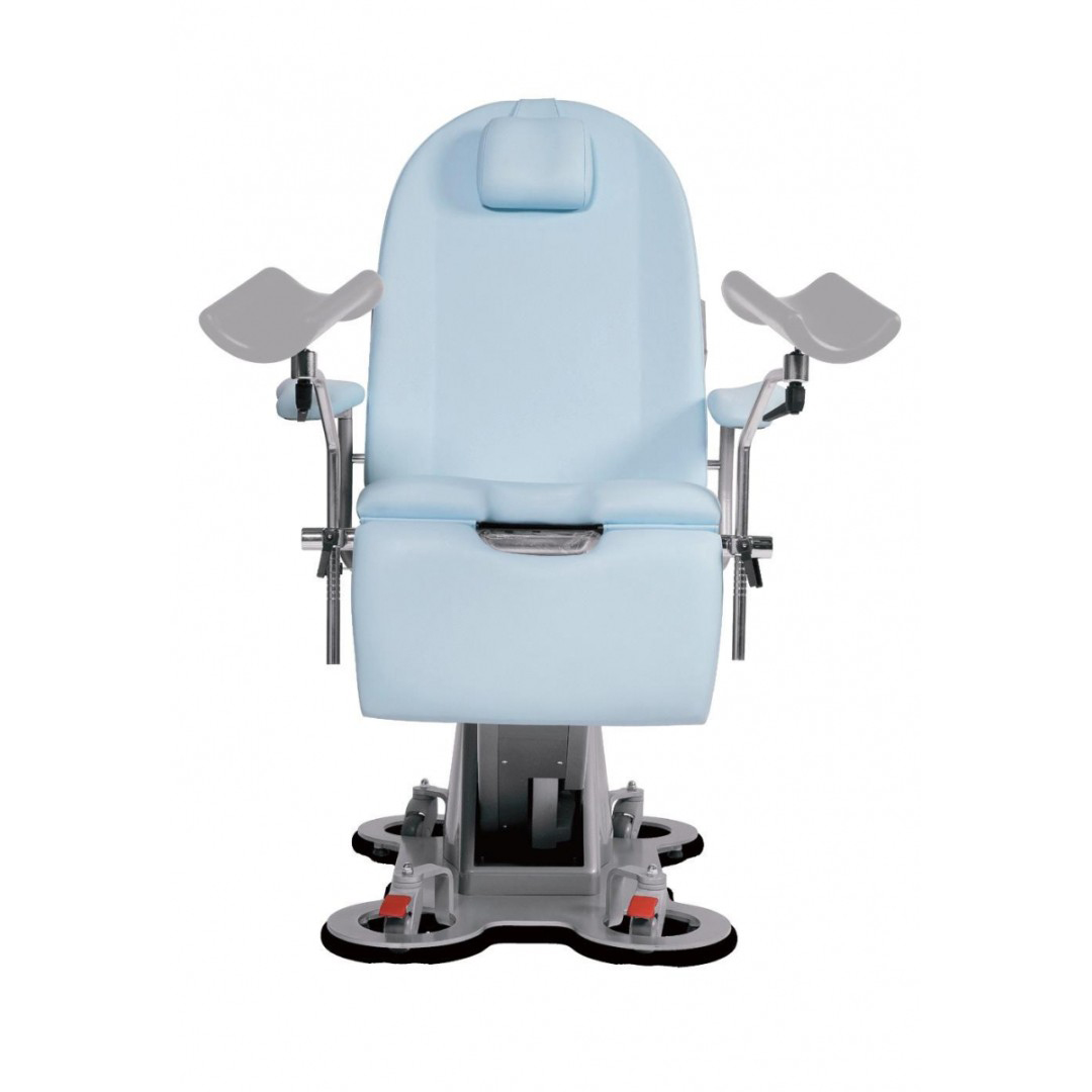 - Кресло легко передвигается на колесном основании, что гарантирует безупречную санитарную обработку рабочей зоны и самого гинекологического кресла;