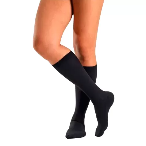 - Гольфы обеспечивают сдавление кожи голени и поверхностных вен ног, ускоряют кровоток, предупреждают развитие венозных и лимфатических отёков в области стопы, лодыжки и на голени.