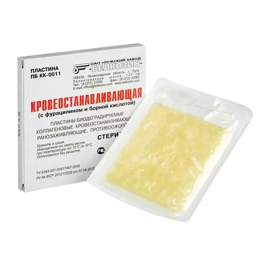 Губка гемостатическая коллагеновая с борной кислотой и фурацилином.