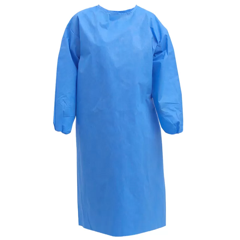 Хирургический халат, нестерильный, ламинированный: с влагонепроницаемым передом и рукавами.