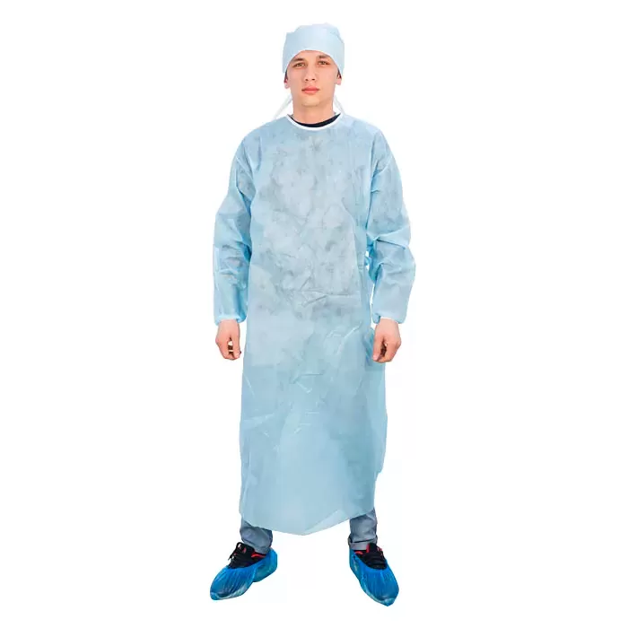 Халат хирургический нестерильный из нетканого полипропилена (спанбонда), не стесняет движений.