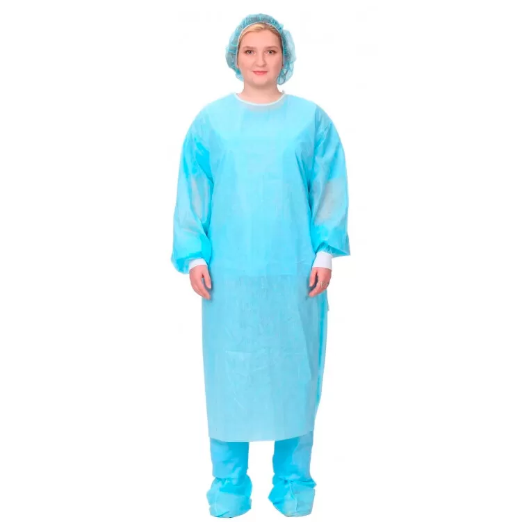 - Халат предназначен для работы с умеренным количеством жидкости. Изготовлен из нетканого материала "спанбонд" плотностью 42 г/м2.