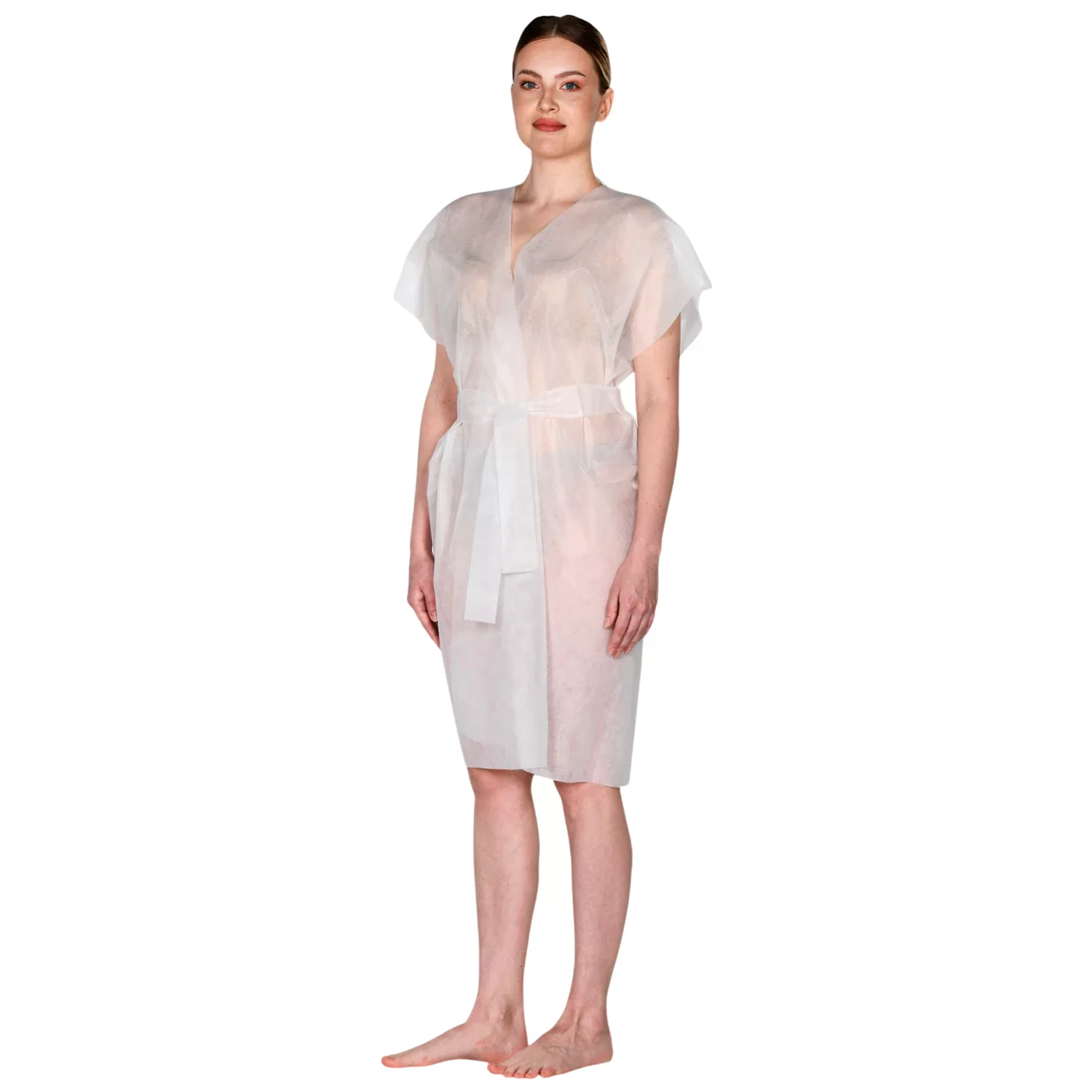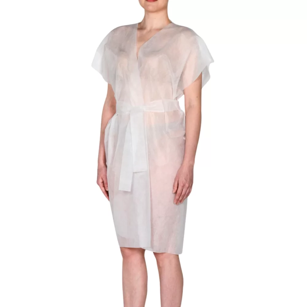 - Одноразовые халаты без рукавов обеспечивают индивидуальную гигиену и комфорт, подходят для использования в косметологии.